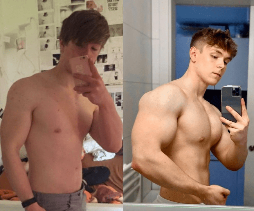 Meet Timo Eherer who is a young German bodybuilder who I somehow befriended on Instagram (find him @new.teemo). He’s been at the iron game for a little over 5 years and is a natural athlete. From his before and after pictures (above left) I think he’s clearly learned a thing or two about how to gain mass over the years. Agreed? Good, keep reading for a few tips on how to grow.
