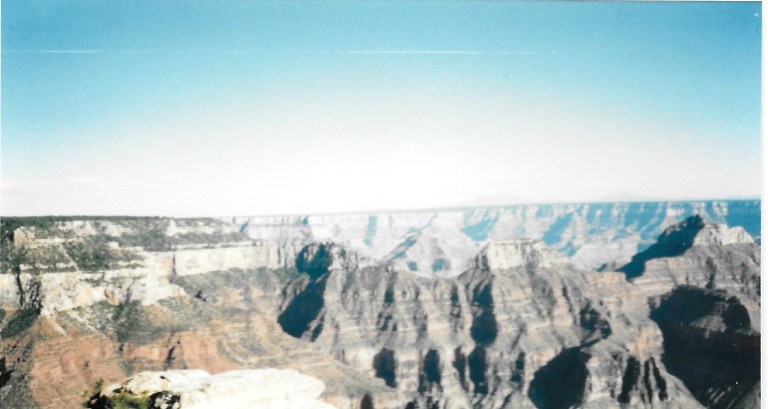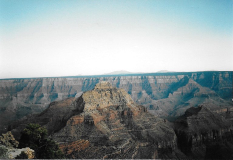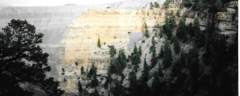 The north rim was, and still is, closer to the canyon in it’s natural state. It is higher in elevation and has a more mountain feel to it. The views are often found behind tall pine trees which are abundant and the air is a little cooler, even in the heat of the summer. In Tuba City we made our decision. Because it was closer to our next destination, Zion, we would go to the North Rim. In hindsight, I’m glad we didn’t detour to California and not just because I would make many visits to the Golden State later in life, but because to miss seeing this Natural Wonder of the World would have left a hole in my heart the size of…well, the Grand Canyon!